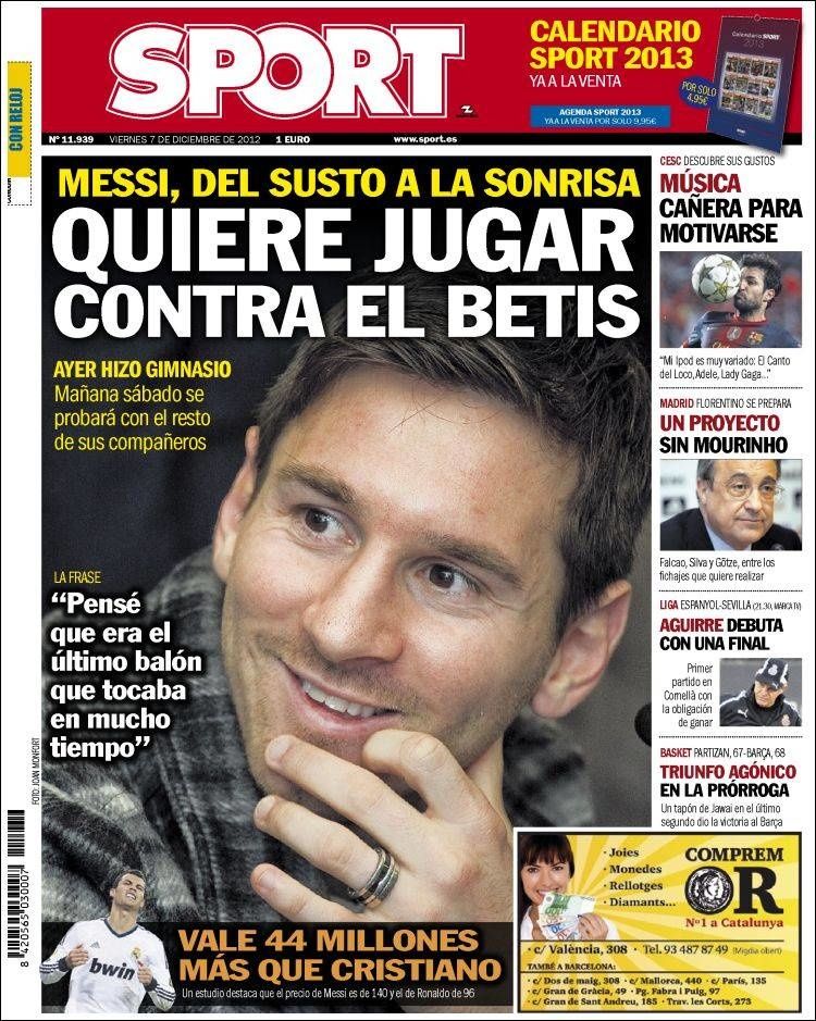 La Une de Sport aujourd'hui (07/12/2012) / La portada de Sport hoy (07/12/2012) / La portada de Sport avui (07/12/2012) / The today's Sport Cover (07/12/2012)